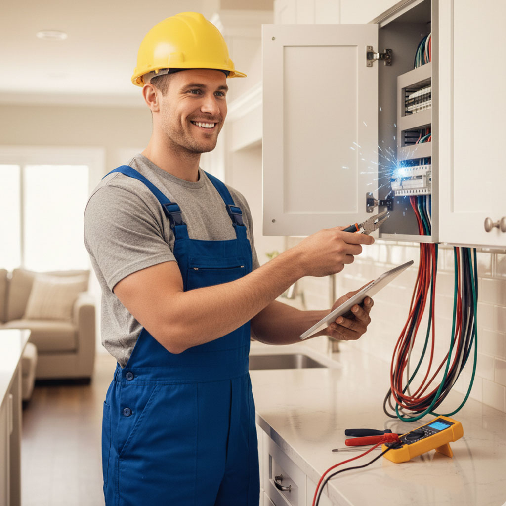 Als zuverlässiger Elektriker in der Region haben Kundenzufriedenheit und Sicherheit für uns oberste Priorität. Unsere erfahrenen und bestens geschulten Mitarbeiter führen sämtliche Elektroarbeiten präzise, fachgerecht und nach aktuellen Standards aus. Dabei setzen wir auf hochwertige Materialien sowie moderne Technologien, um stets optimale und nachhaltige Ergebnisse zu gewährleisten.